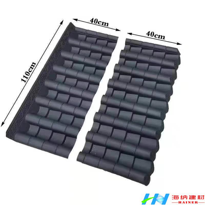 這是一款定制裝飾仿古防琉璃瓦,其色彩持久,光鮮亮麗,可以確保十年的顏色不變,易清潔,不易吸附灰塵,一經(jīng)過雨水的沖刷就就清潔如新了,在常年積雪的地區(qū)也不會(huì)產(chǎn)生損壞和斷料的現(xiàn)象。負(fù)載能力強(qiáng)。在暴雨,雷電天氣里,有著吸收噪音的功能,隔音效果佳。適用于農(nóng)莊農(nóng)家樂裝飾,城市平改坡、農(nóng)貿(mào)市場(chǎng)、工業(yè)廠房、住宅小區(qū)、新農(nóng)村建設(shè)居民別墅、雨篷、遮陽(yáng)篷、仿古建筑等屋面上。